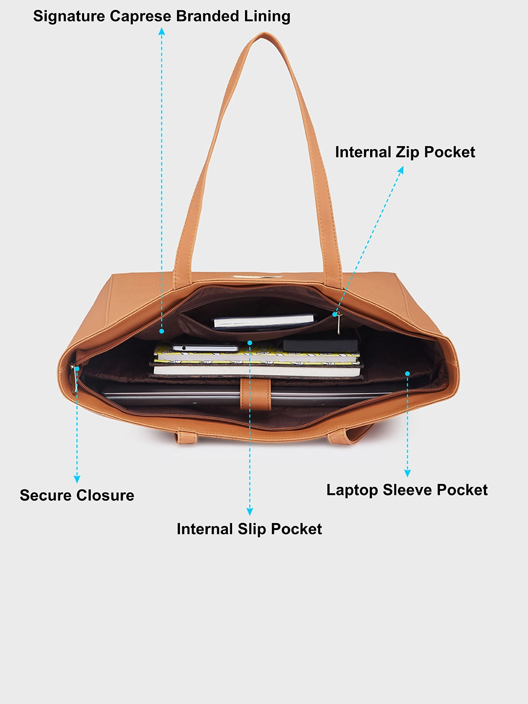 Stay organized with the easy access back pocket of the Caprese Handbag. This feature is perfect for essentials, making it an ideal office bag or college bag. Designed as a laptop bag for women handbag, it ensures quick access to your essentials, keeping you prepared on the go.