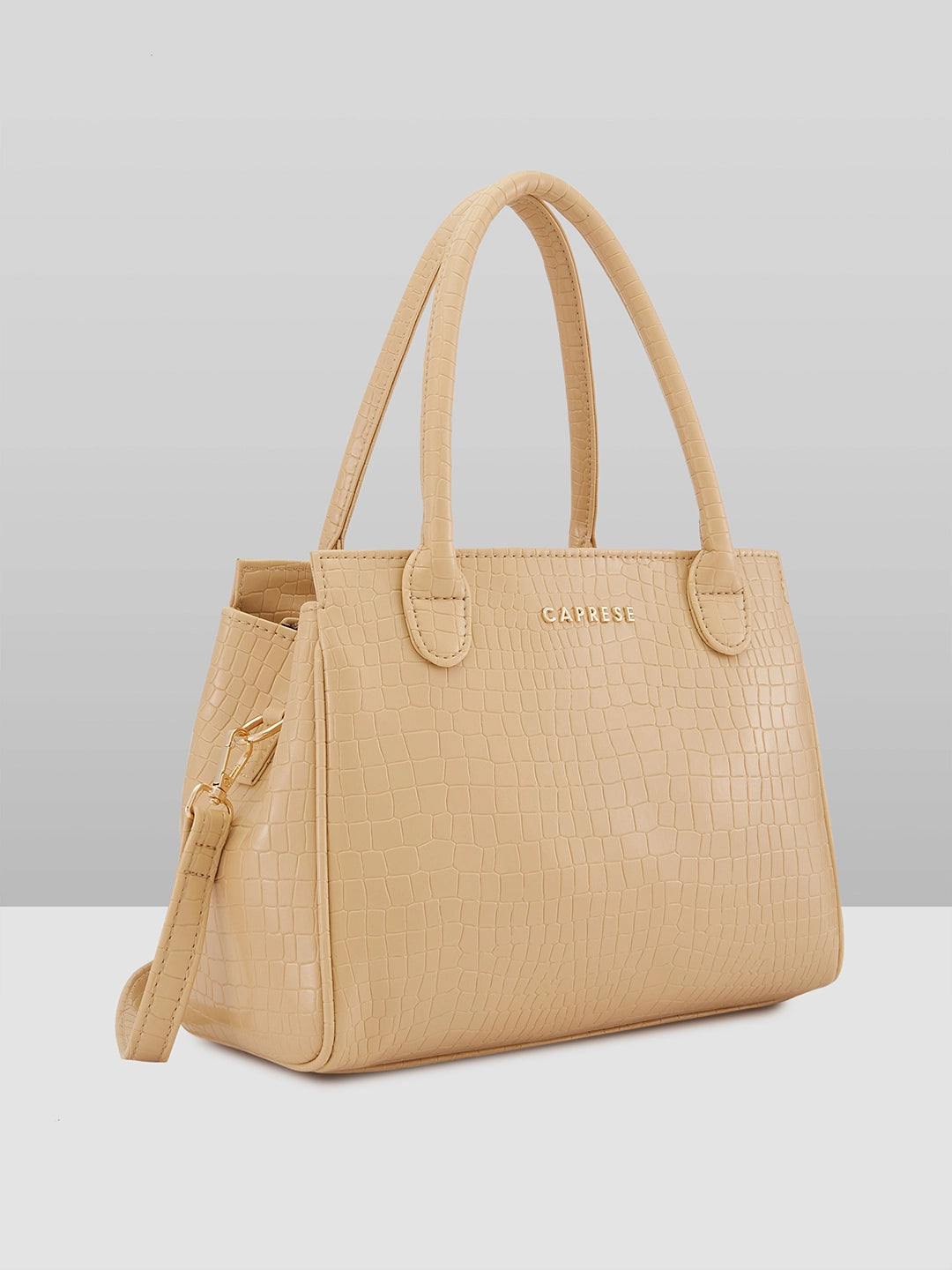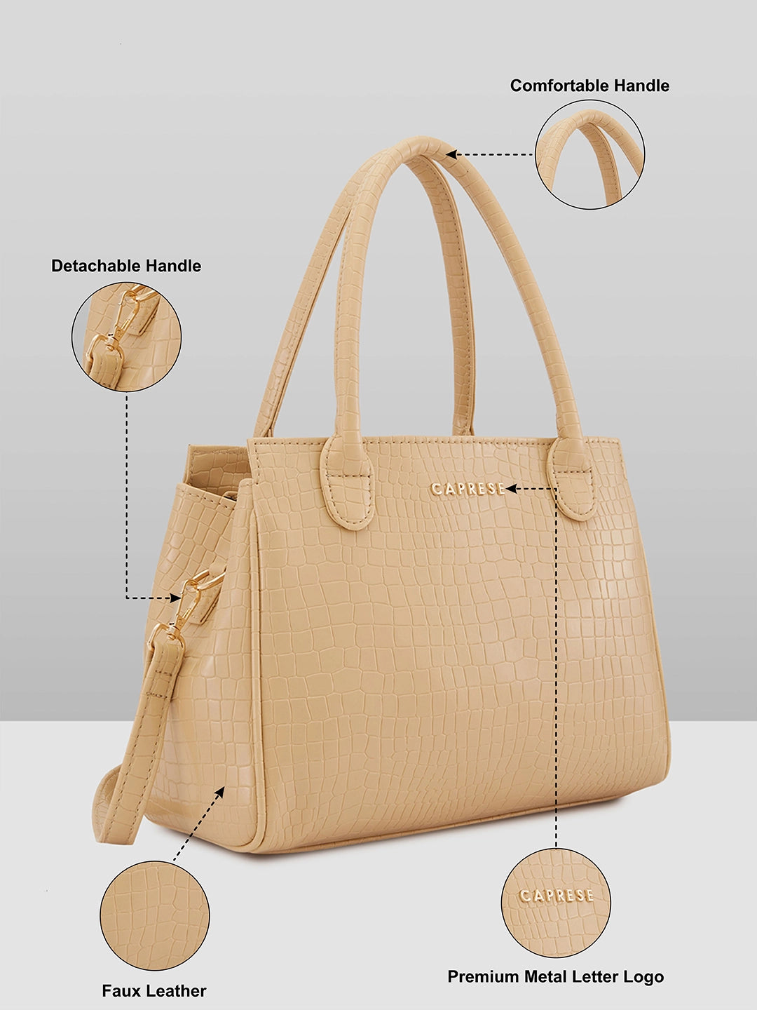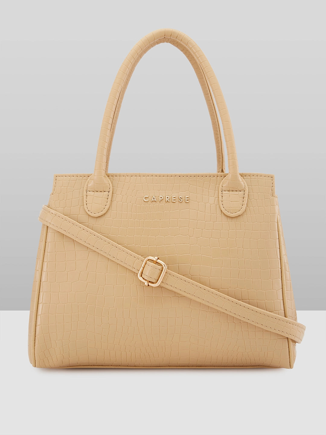Introducing the Caprese Satchel Medium bag, a sleek and stylish handbag featuring a luxurious croco finish. This medium-sized shoulder bag is perfect for office use and daily activities, providing ample space for all your essentials. With multiple compartments, it ensures excellent organization and easy access to your items. The detachable, adjustable shoulder strap adds versatility, making it a must-have accessory for any occasion. Elevate your style with this fashionable and functional office bag.