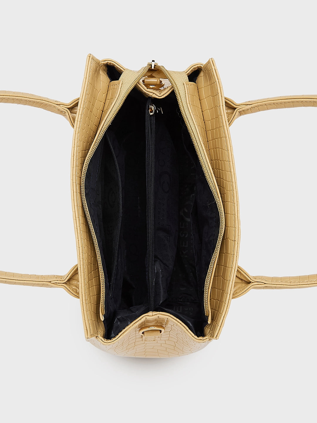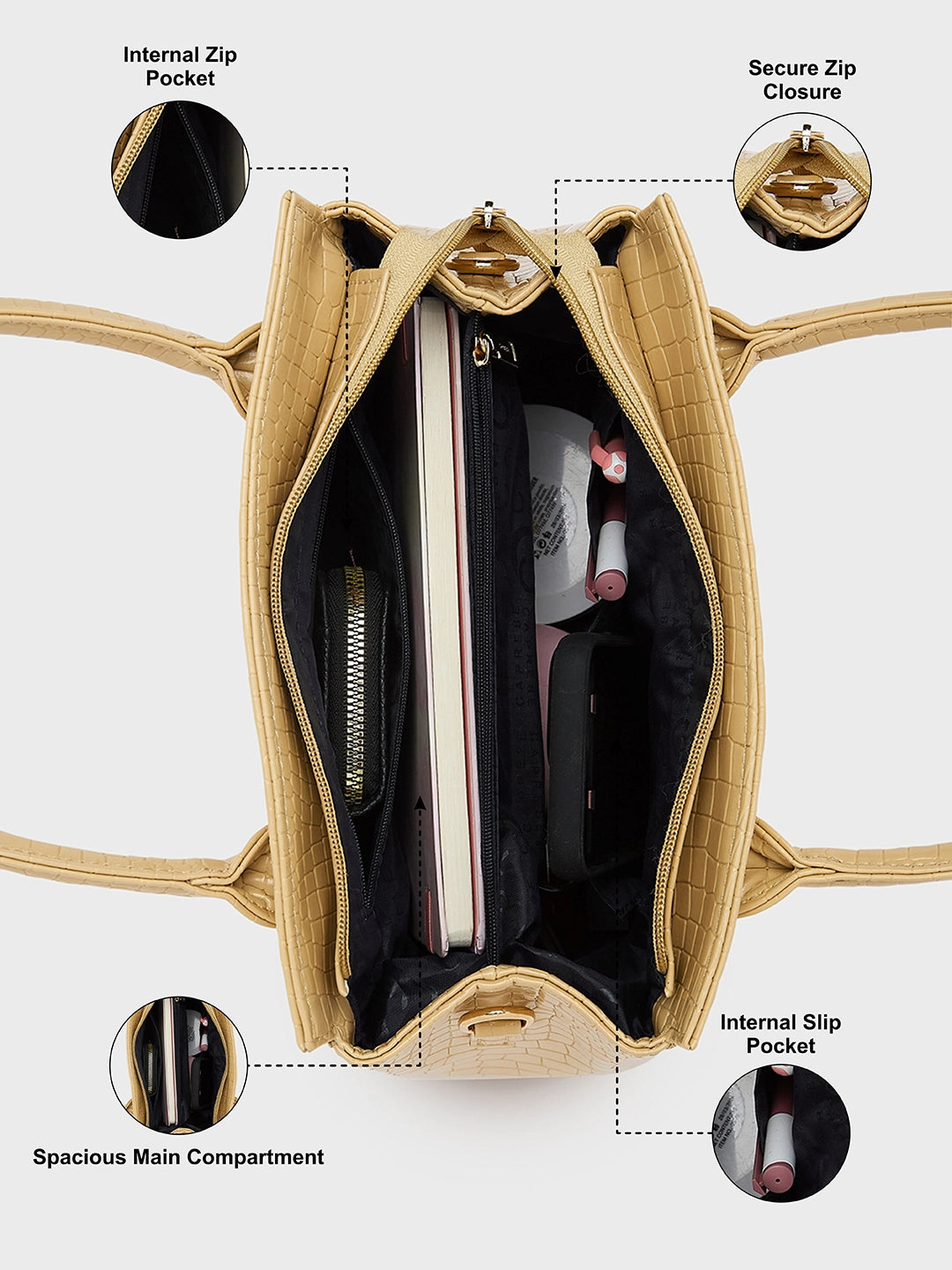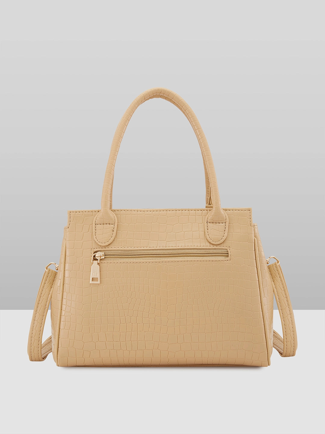 Introducing the Caprese Satchel Medium bag, a sleek and stylish handbag featuring a luxurious croco finish. This medium-sized shoulder bag is perfect for office use and daily activities, providing ample space for all your essentials. With multiple compartments, it ensures excellent organization and easy access to your items. The detachable, adjustable shoulder strap adds versatility, making it a must-have accessory for any occasion. Elevate your style with this fashionable and functional office bag.