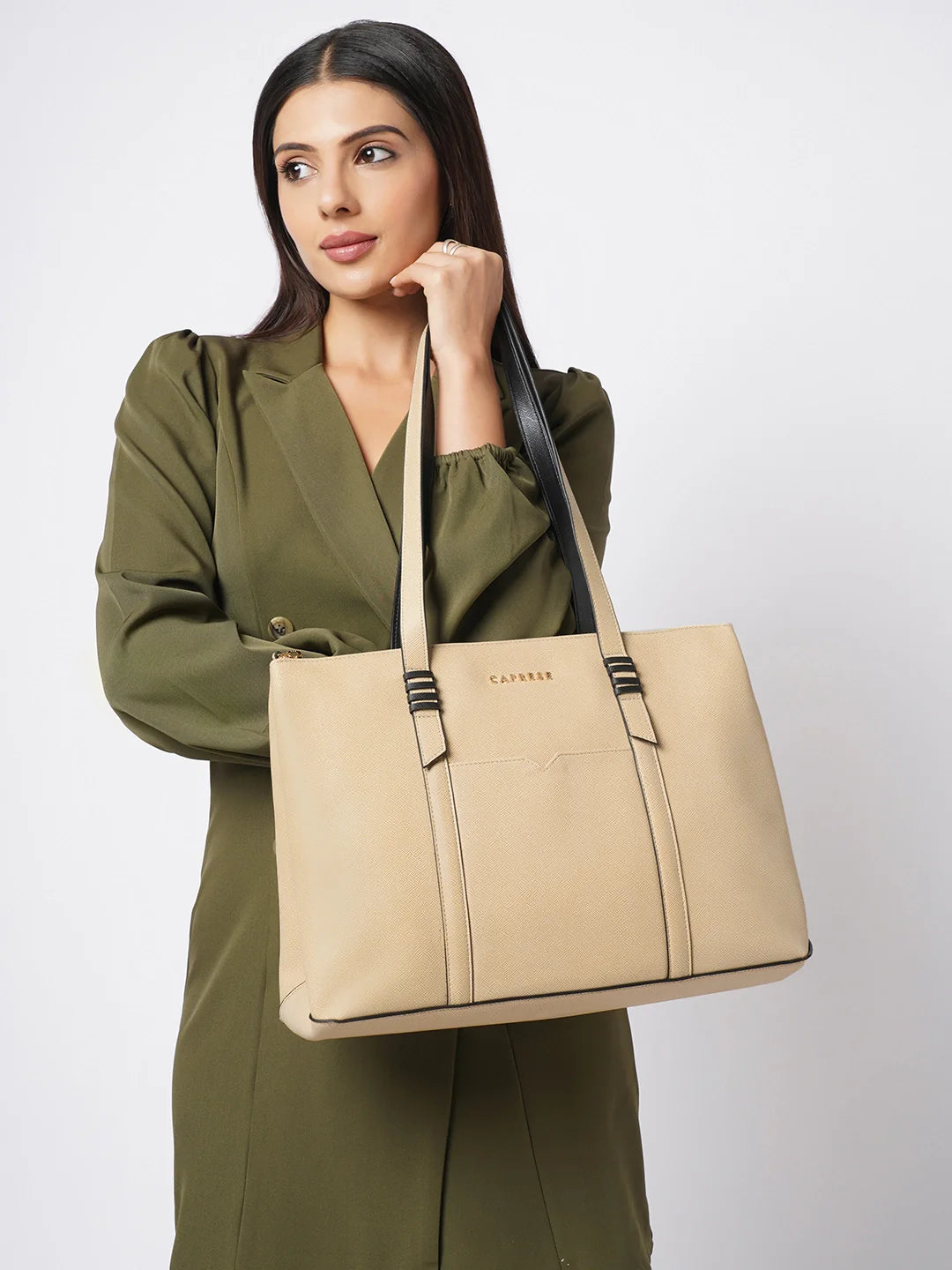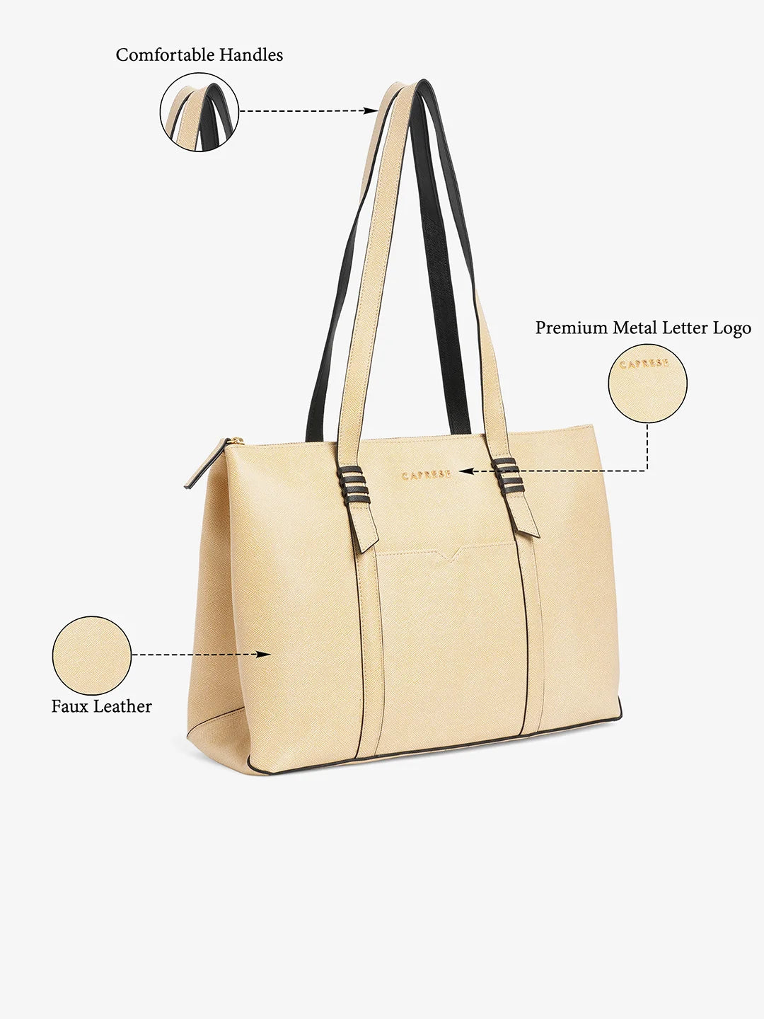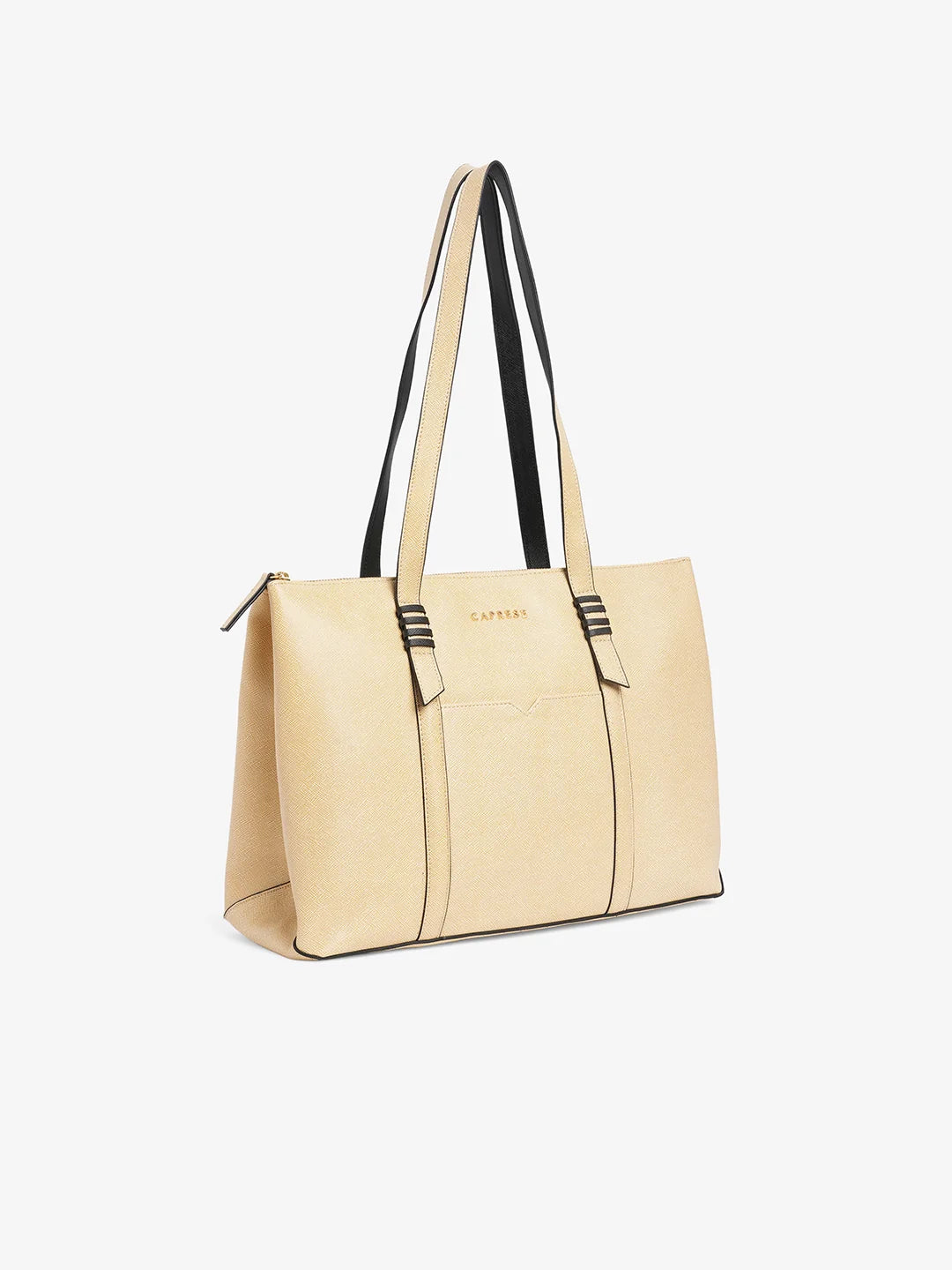 Discover the Caprese Tote Large Bag a durable and stylish with a unique woven finish texture. This spacious bag features a smart sleeve and multiple compartments to keep your essentials organized. Comfortable shoulder handles make it easy to carry, while the sturdy design ensures it’s perfect for office, travel, or everyday use. Combining functionality with fashion, this beige tote is a versatile accessory for women.