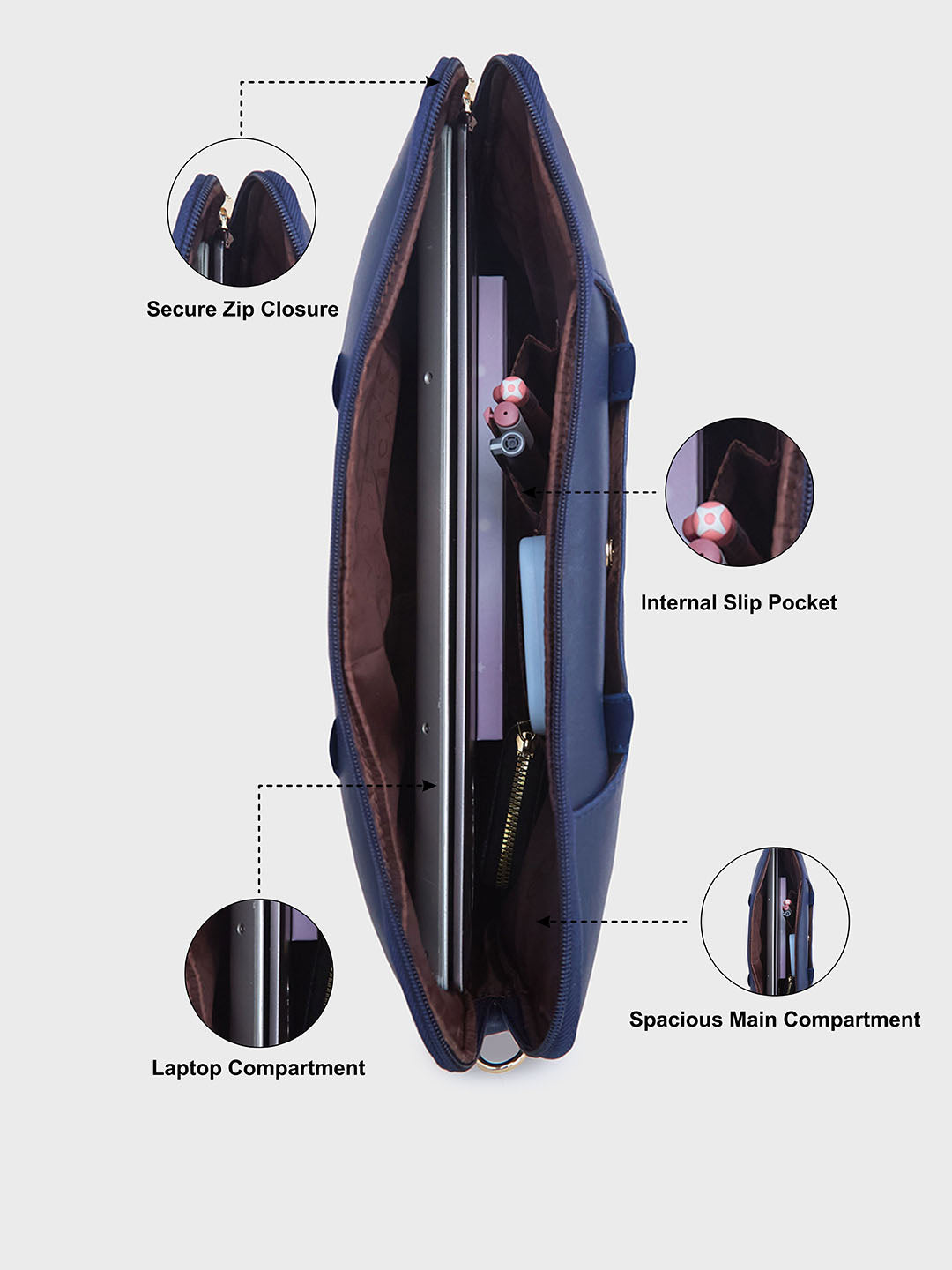 Caprese Ryma Medium Blue & Navy Laptop Bag Bag