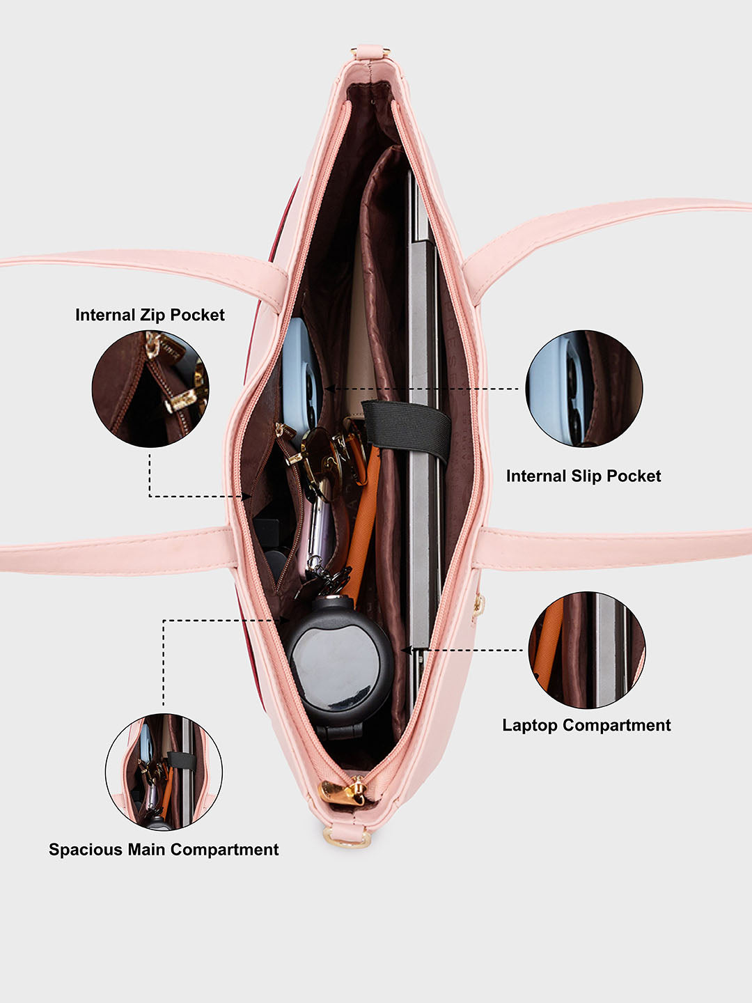 The Laptop bag is designed to accommodate a 16-inch laptop, making it a stylish laptop handbag for women. Its spacious compartments are perfect for office and daily essentials, making it a top choice for an office bag or college bag. This laptop bag for women handbag combines style with practicality.