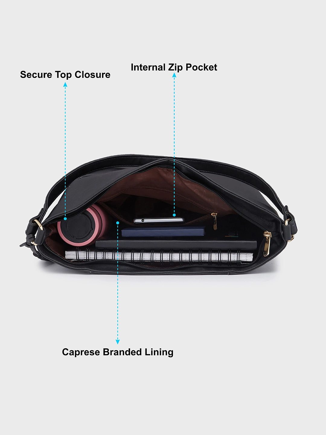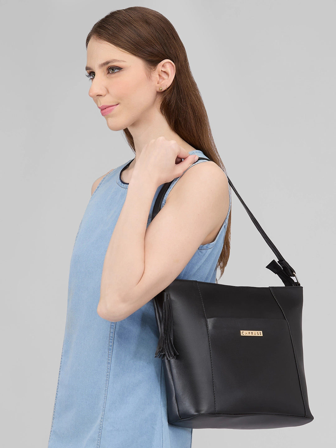Caprese Sari Medium Black Hobo Bag