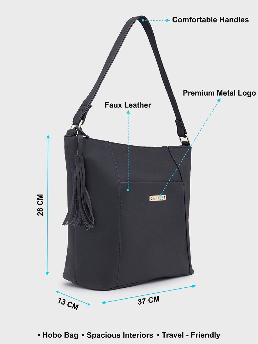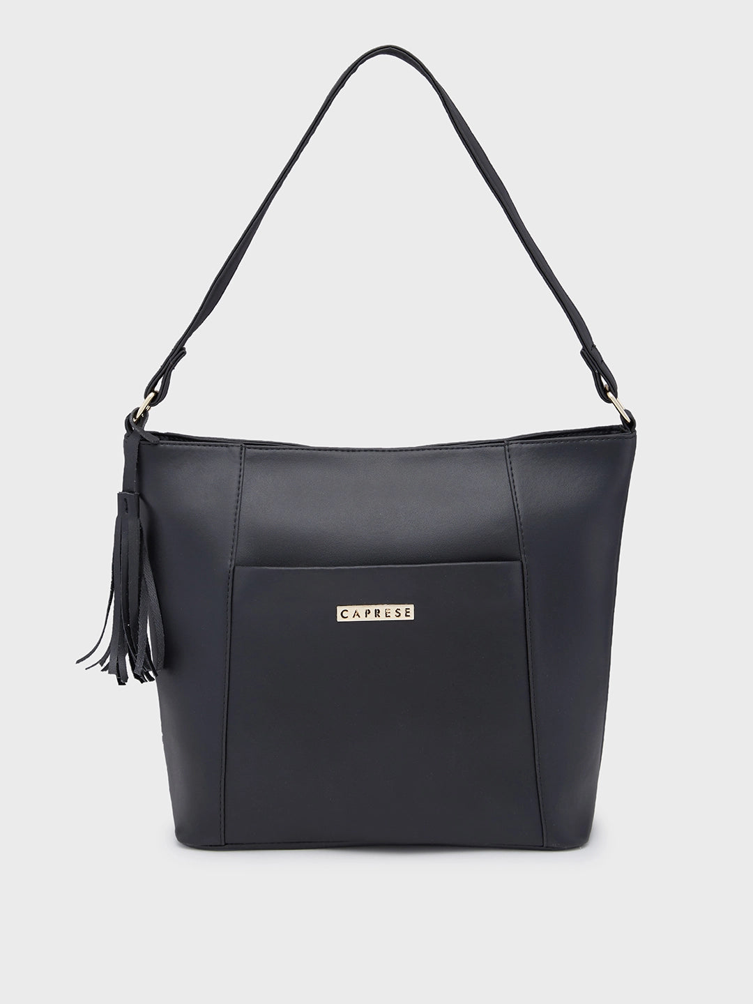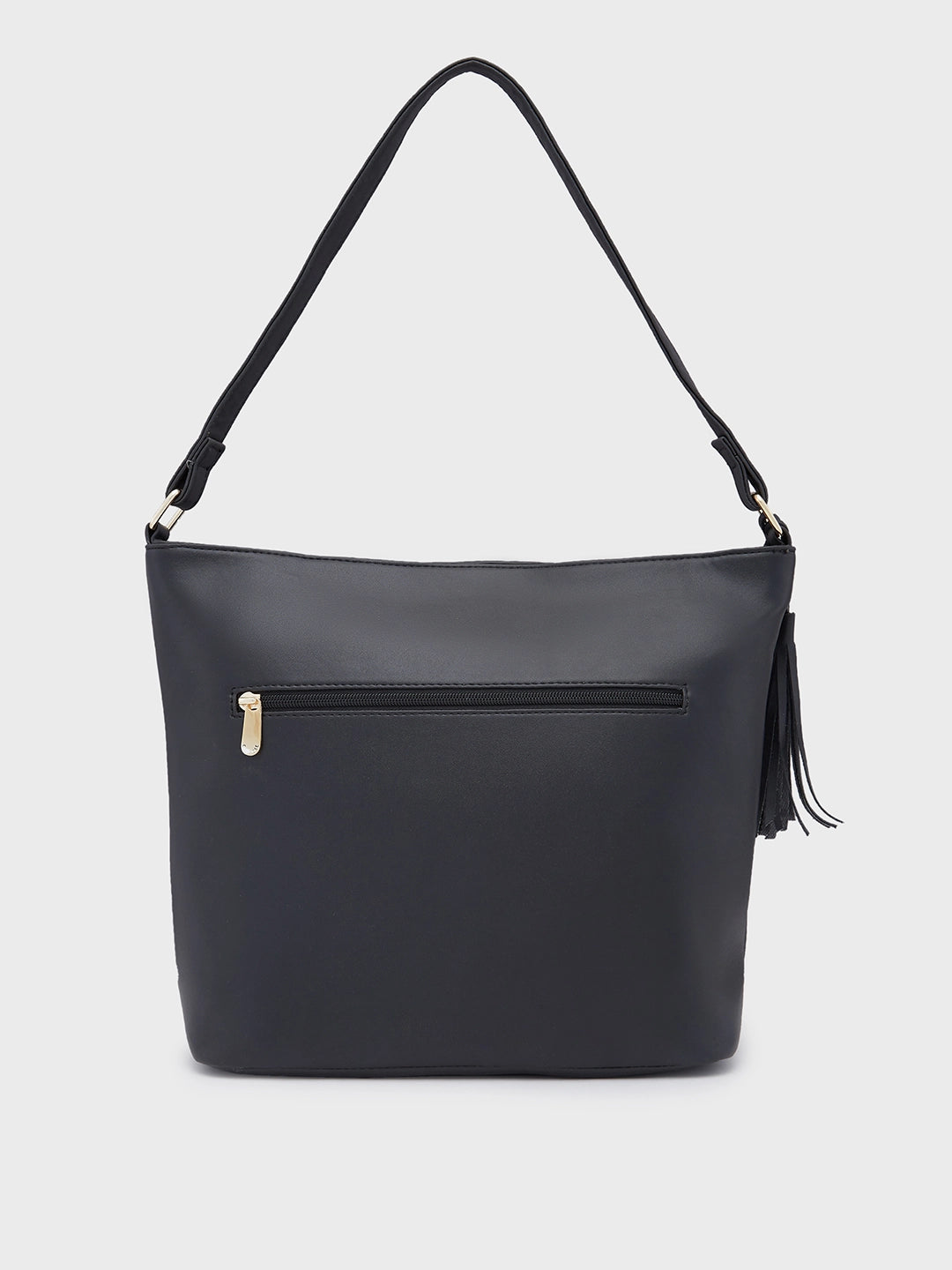 Introducing the Sari Hobo Medium Black, a sophisticated shoulder bag for women that combines style with functionality. This trendy handbag features a chic front tassle, a practical front pocket, and a secure back zip, offering multiple compartments to keep everything organized. The versatile black color makes it a perfect accessory for any occasion. Whether you're heading to the office or out for a casual day, this medium-sized hobo bag ensures you carry your essentials with flair and ease. Elevate your accessory collection with this stylish and practical bag for women.