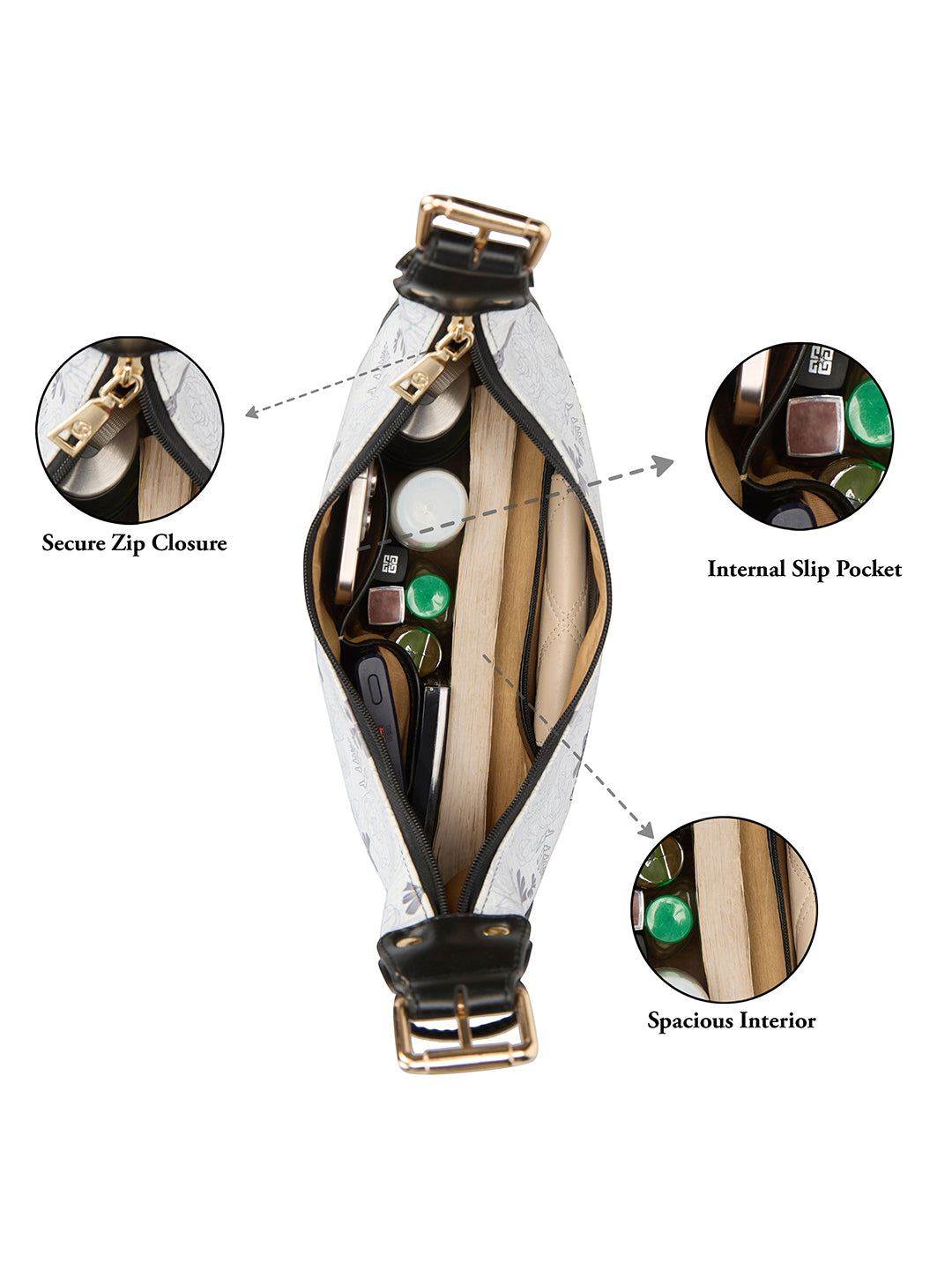 Secure Zipper Closure: Keeps belongings safe while maintaining a sleek and fashionable style.