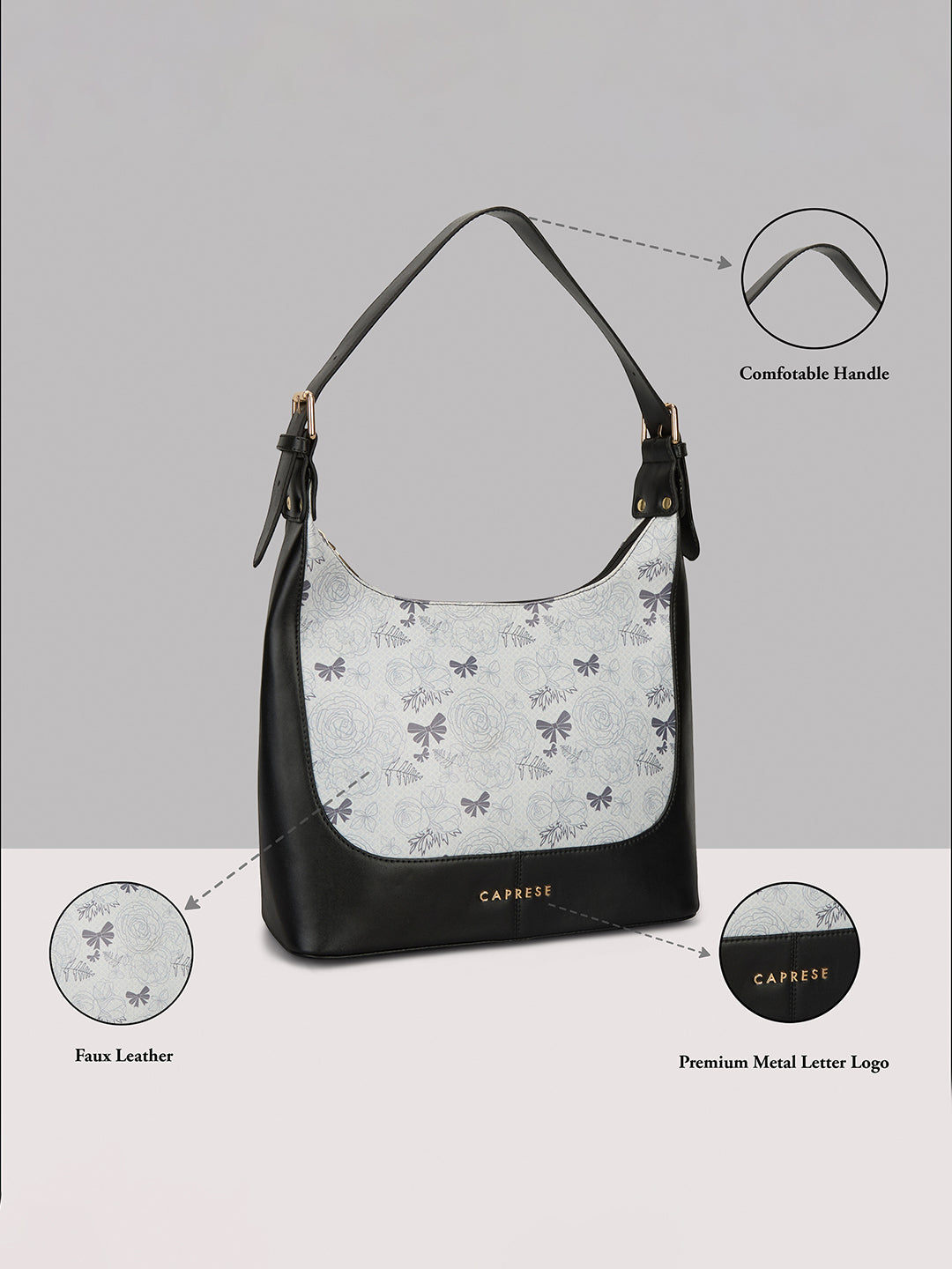 Step out in style with the Caprese Scarlet Medium Hobo Bag, crafted from premium printed faux leather for a chic and durable finish. Designed with multiple compartments, it keeps essentials like wallet, phone, makeup, and small gadgets neatly organized. The comfortable shoulder strap allows for effortless carrying throughout the day, while the secure zipper closure ensures your belongings stay safe. Lightweight yet spacious, this hobo bag is perfect for office, casual outings, shopping, or travel. A versatile and fashionable accessory, the Scarlet Hobo Bag combines practicality with elegance, making it a must-have for modern women.