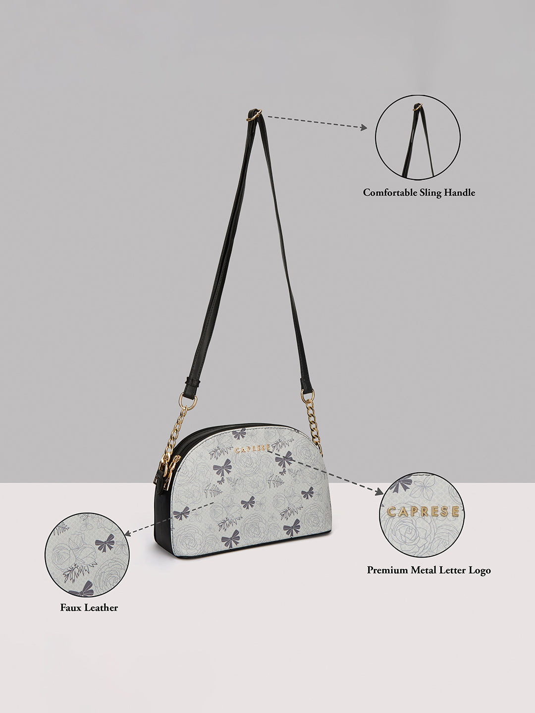 Carry your essentials in style with the Caprese Scarlet Small Sling Bag, crafted from premium printed faux leather for a chic and durable finish. Its multi-compartment design keeps your phone, wallet, keys, and small accessories organized and easily accessible. The adjustable strap allows you to wear it comfortably as a shoulder or crossbody bag, providing hands-free convenience. Featuring a secure zipper closure, this compact sling bag ensures your belongings stay safe while maintaining a modern, stylish look. Ideal for office, shopping, casual outings, or travel, the Scarlet Sling Bag is a versatile accessory that blends practicality with fashion.