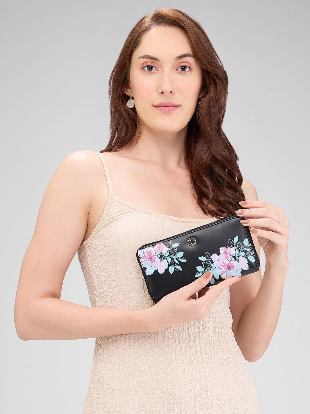 Caprese Shanaya Zip Around Printed Wallet Large Black