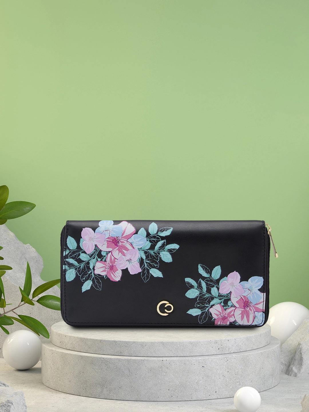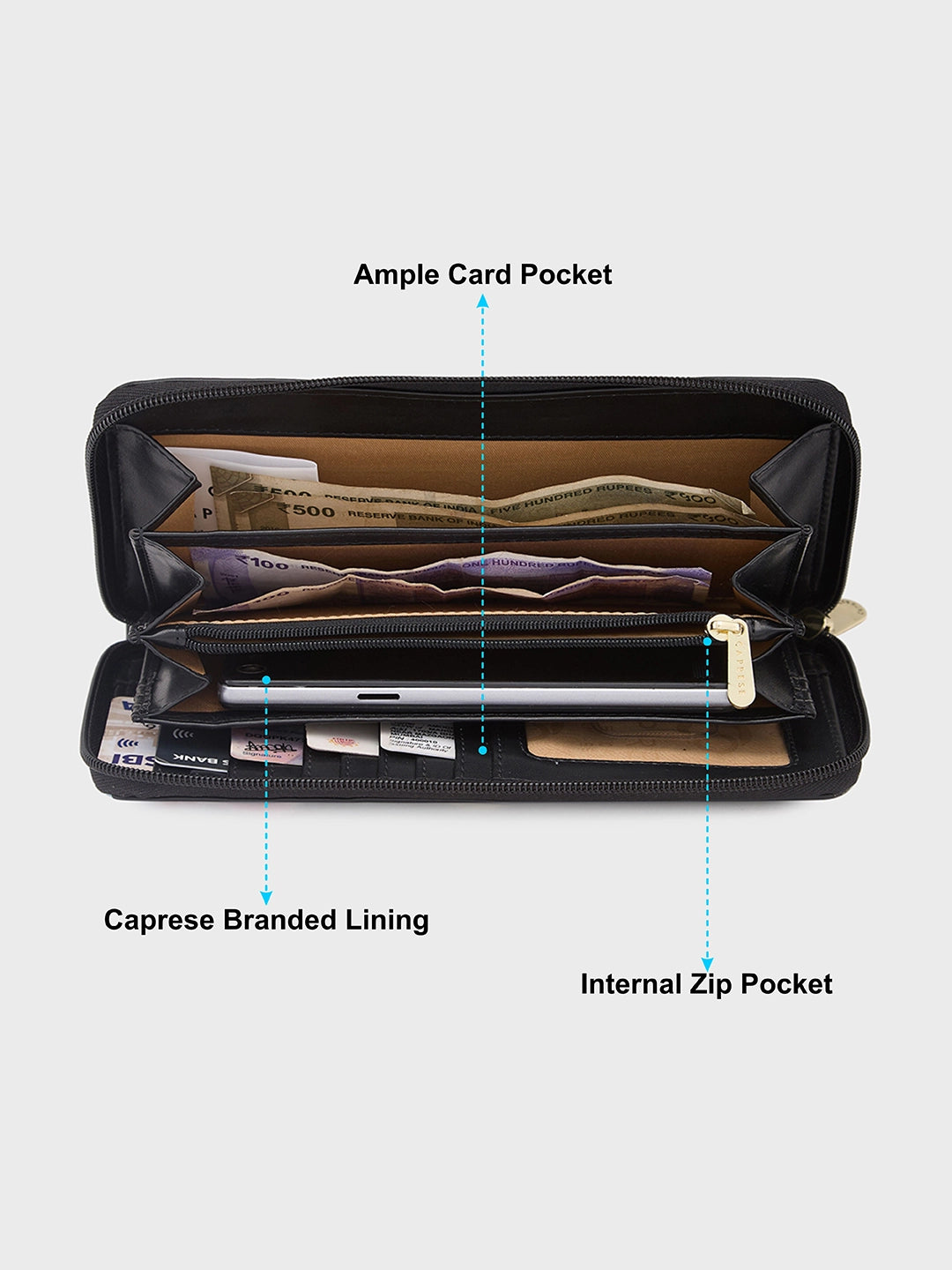 Caprese Shanaya Large Black Printed Zip Around Wallet