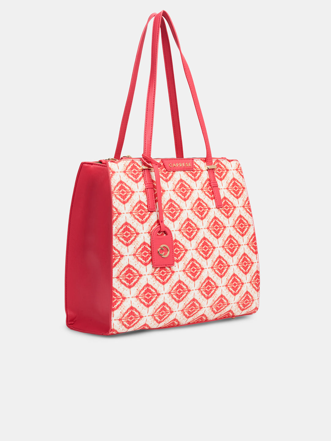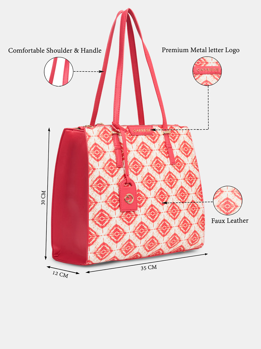 Add a pop of style to your everyday look with the Caprese Shibori Large Tote, crafted from premium printed faux leather for a chic and durable finish. This spacious tote features multiple compartments to organize your wallet, phone, keys, makeup, and other essentials effortlessly. The shoulder bag design ensures comfortable carrying, while the zipper closure keeps your belongings secure. Comes with a detachable Caprese charm for an added touch of elegance. Perfect for office, shopping, casual outings, or travel, the Shibori Tote Large blends fashion, functionality, and playful sophistication.