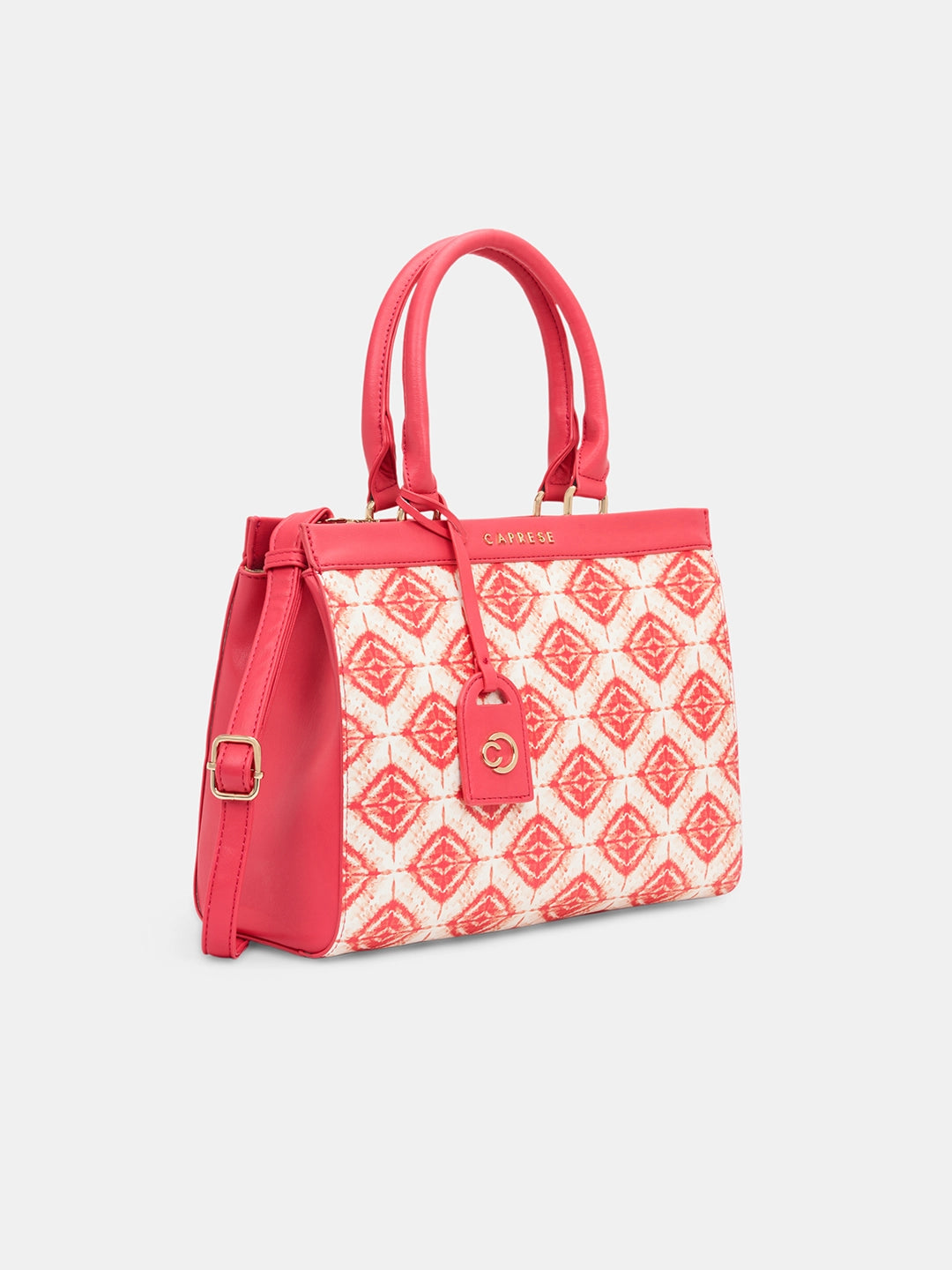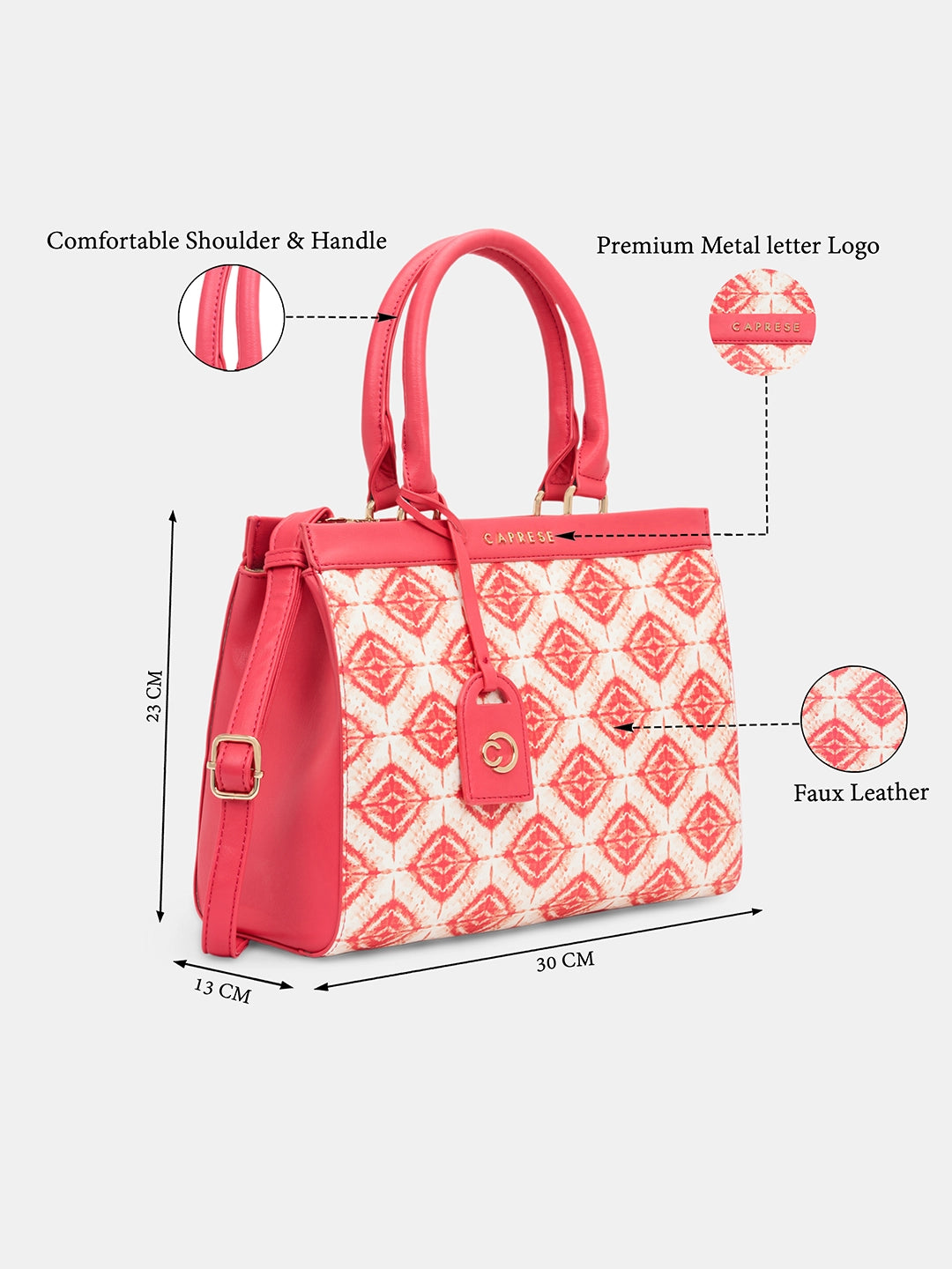 Bring effortless style and functionality to your everyday look with the Caprese Shibori Medium Satchel, crafted from premium printed faux leather for a chic and durable finish. Featuring multiple compartments, this satchel helps organize your wallet, phone, keys, makeup, and other essentials. The adjustable and detachable strap provides versatile shoulder or crossbody carrying options, while the zipper closure keeps your belongings secure. Complete with a detachable Caprese charm for a playful, elegant touch, this satchel is perfect for office, shopping, travel, or casual outings.