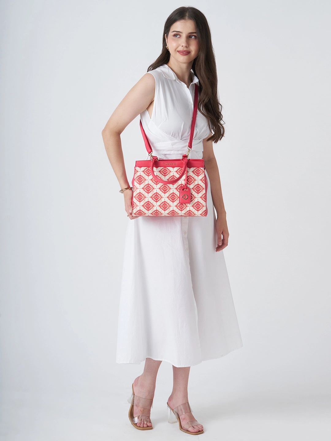 Detachable Caprese Charm & Zipper Closure: Adds elegance while securing belongings.