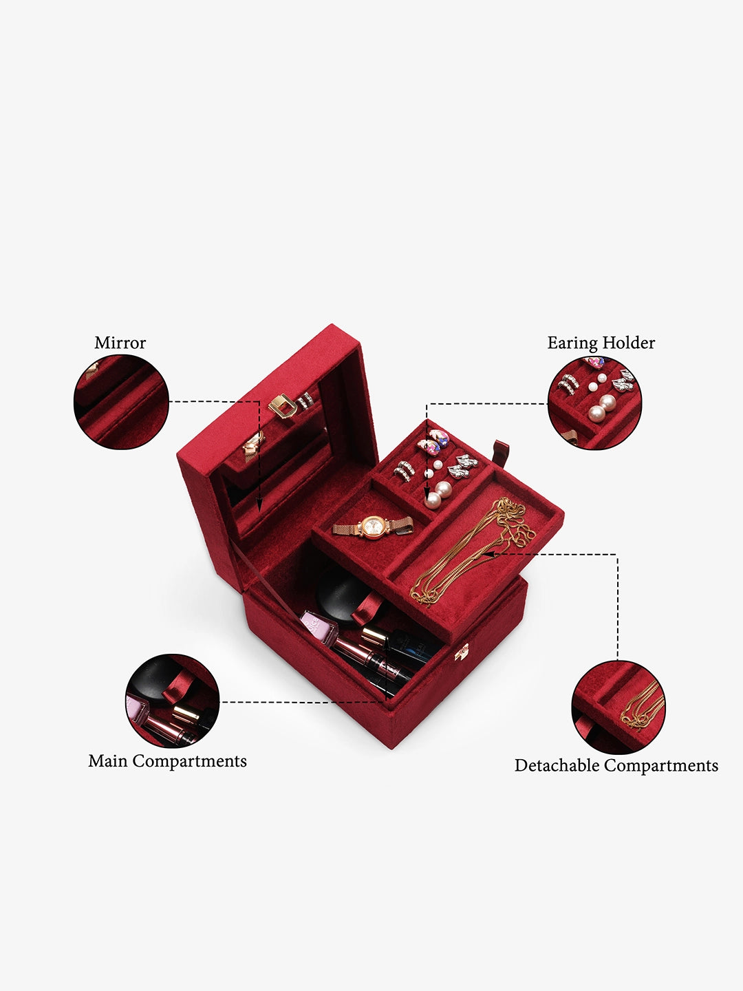 Spacious & Versatile: Multiple compartments for jewelry like rings, earrings, and necklaces, along with space for makeup items such as lipsticks, brushes, and more.