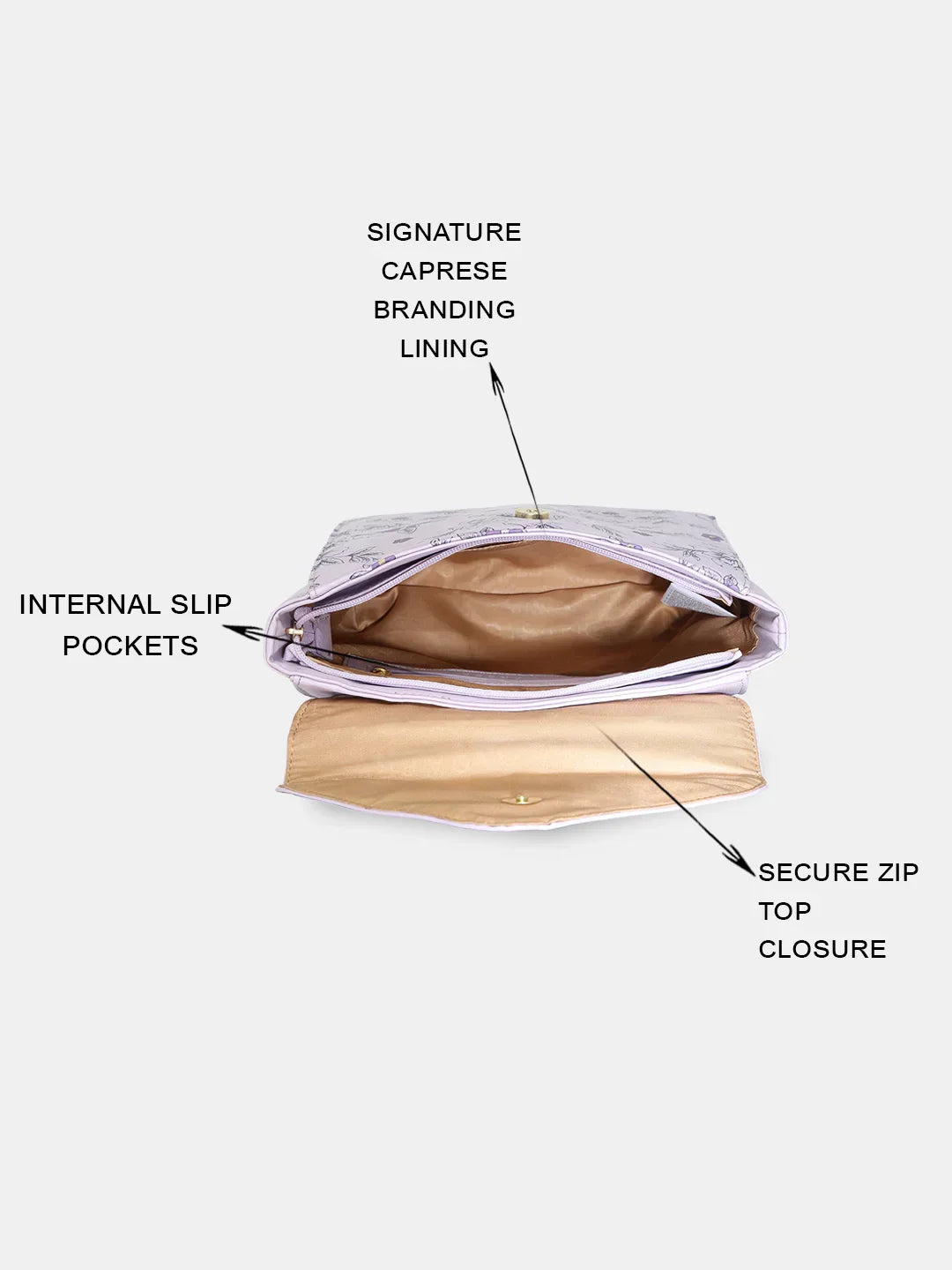 Introducing the Caprese Snow Sling Small Printed Women's Handbag—a stylish and compact accessory designed to enhance your everyday look with a touch of charm. Crafted with meticulous attention to detail, this small-sized sling bag features a captivating printed design that adds a playful flair to any ensemble. Despite its compact size, it offers just enough room to carry your essentials, making it perfect for running errands or exploring the city. The adjustable sling strap ensures a comfortable and customizable fit, allowing you to wear it across your body or over your shoulder with ease. Whether you're out for a casual outing or heading to a weekend brunch, the Caprese Snow Sling Small effortlessly combines style and practicality, making it a must-have addition to your accessories collection.