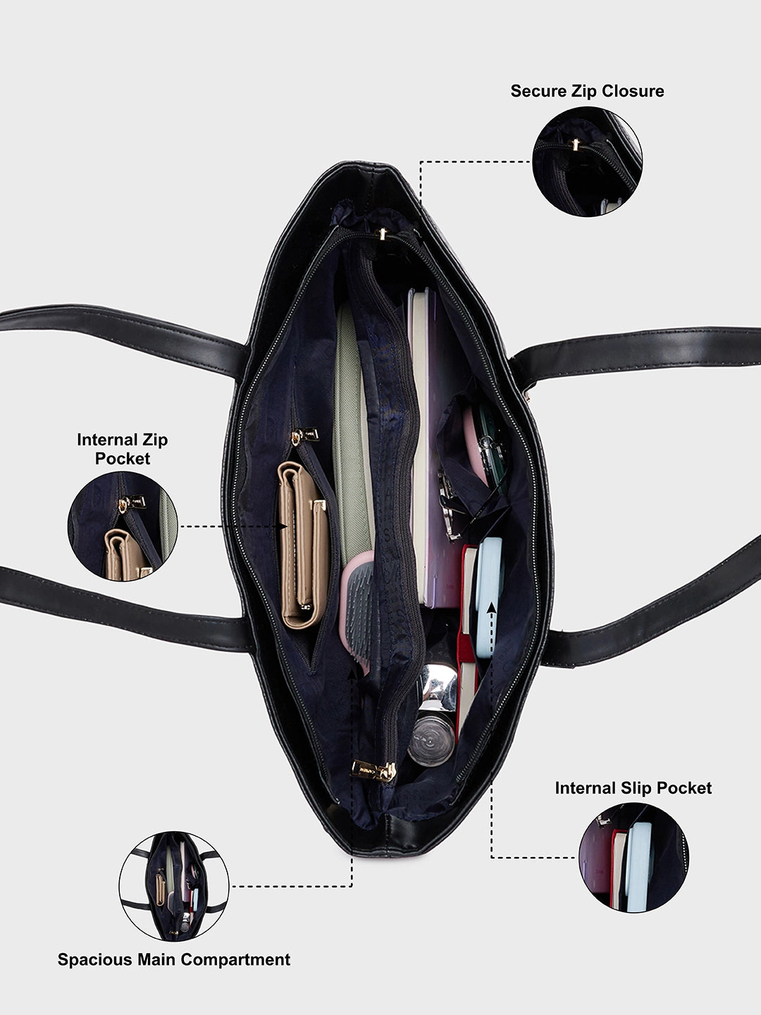 The internal zip pocket helps organize all your essentials for office and daily use. Whether you need a reliable office bag or a functional college bag, this handbag for women ensures your items are neatly stored and easily accessible. A must-have for women on the go, combining convenience with elegance.