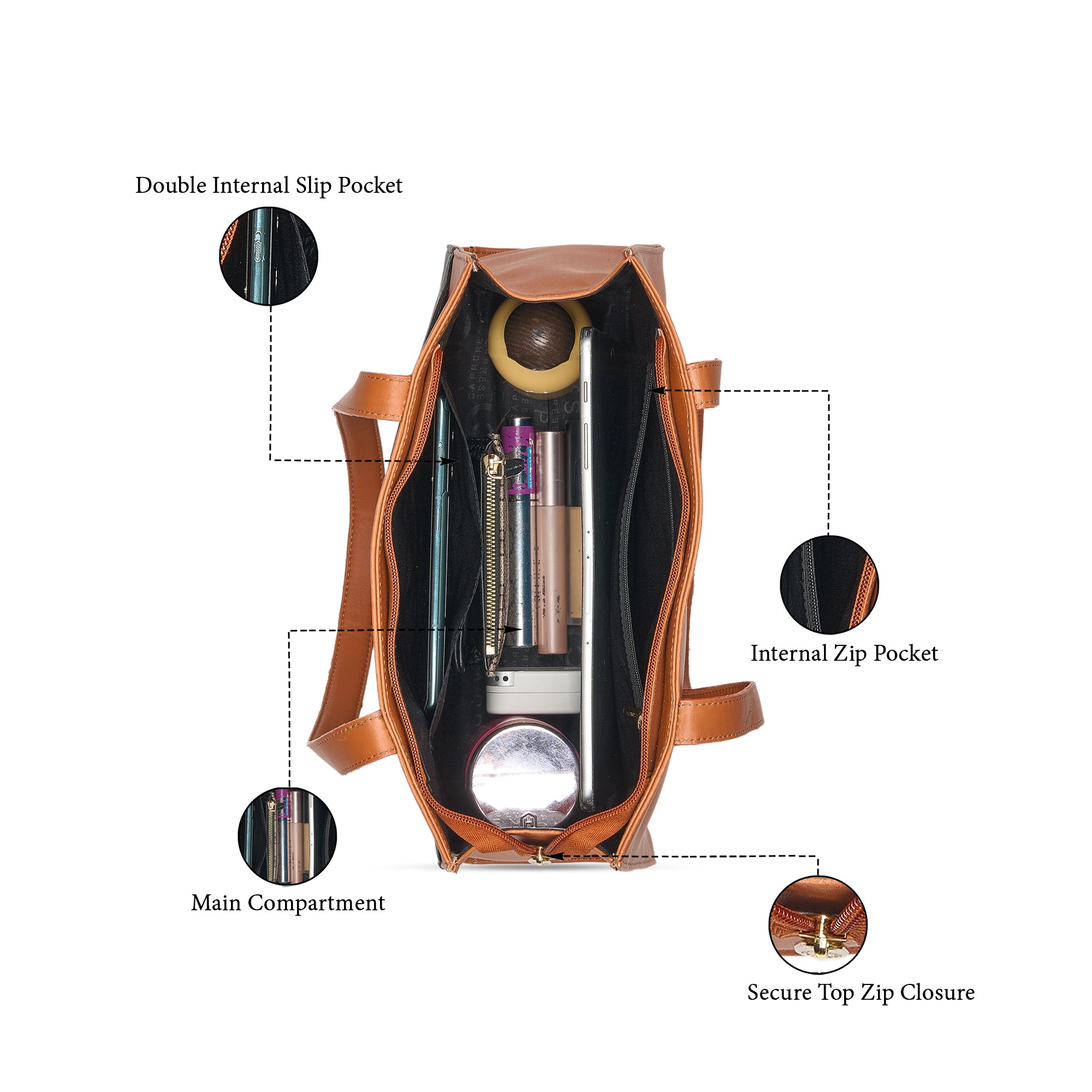 Multi-Compartment: Multiple organizational pockets to keep essentials neatly arranged and easily accessible.