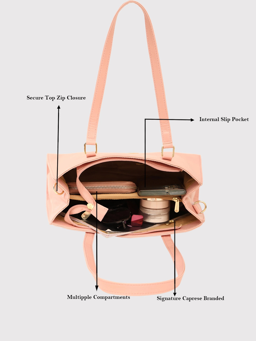 Caprese Thyma Small Dull Pink Tote Bag