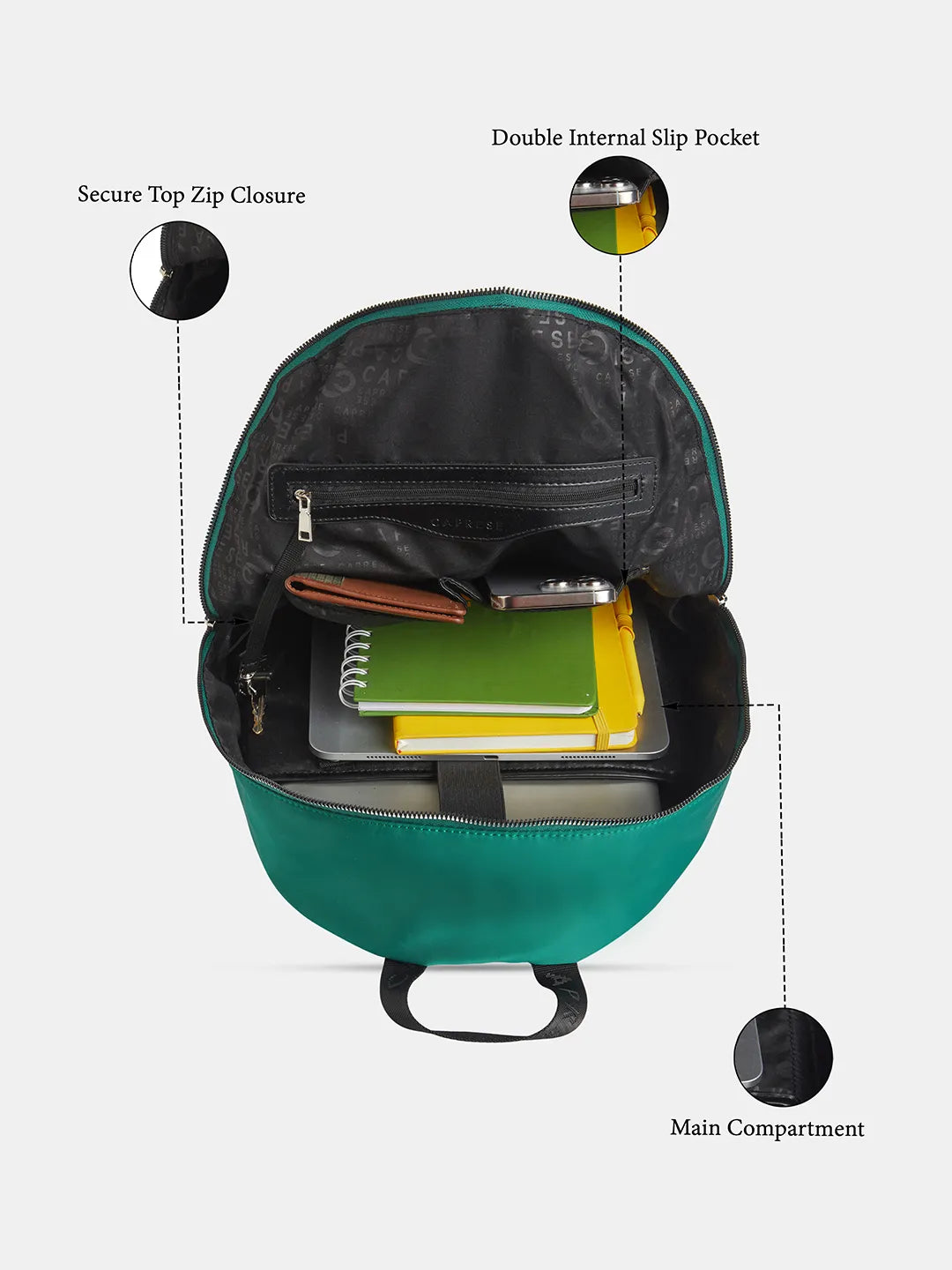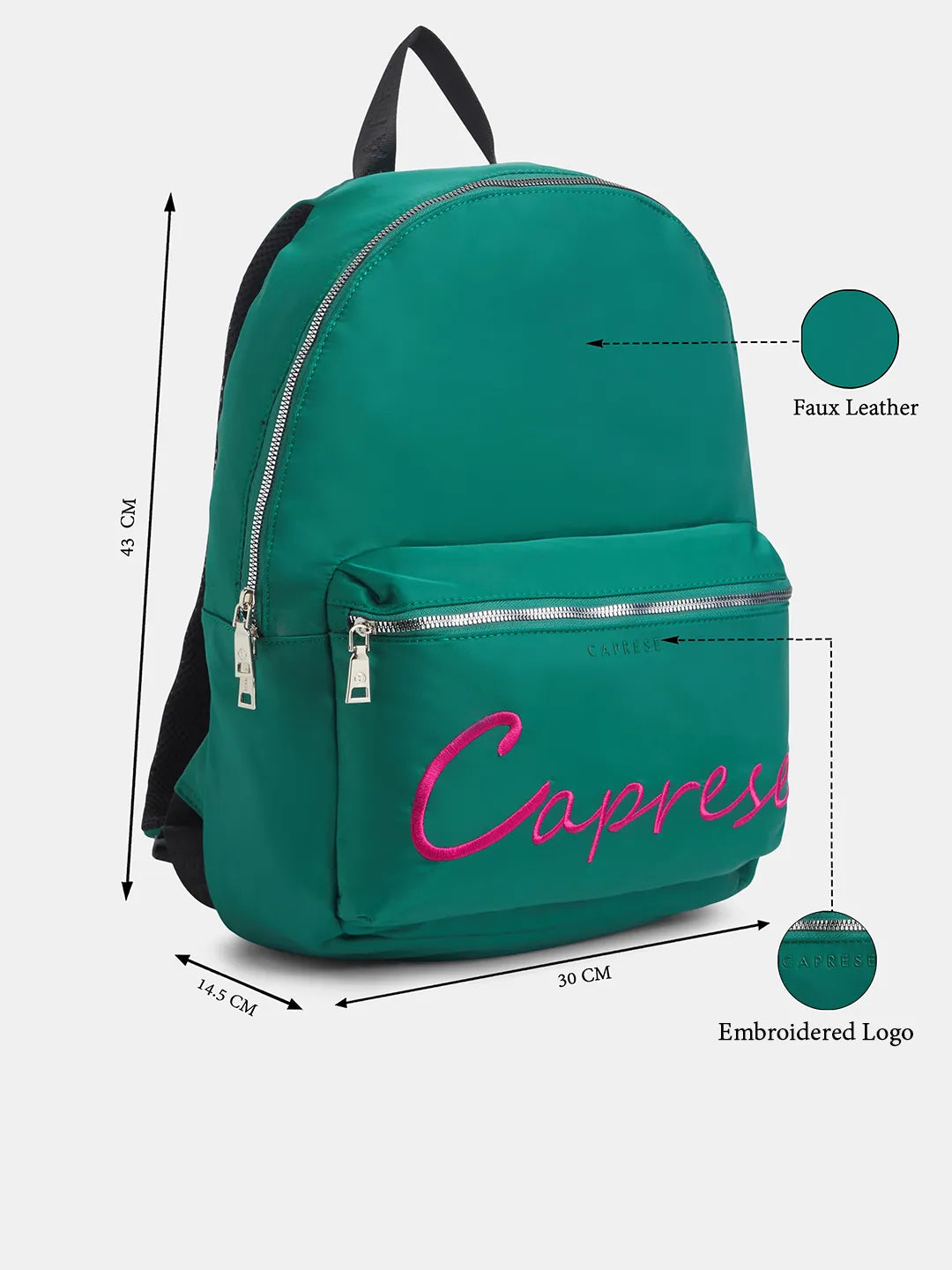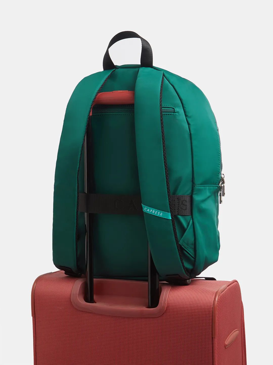 Distinctive Color Block Design: Features a stylish dark green color with a contrasting color block accent, highlighting the signature Caprese logo for a modern and unique look.