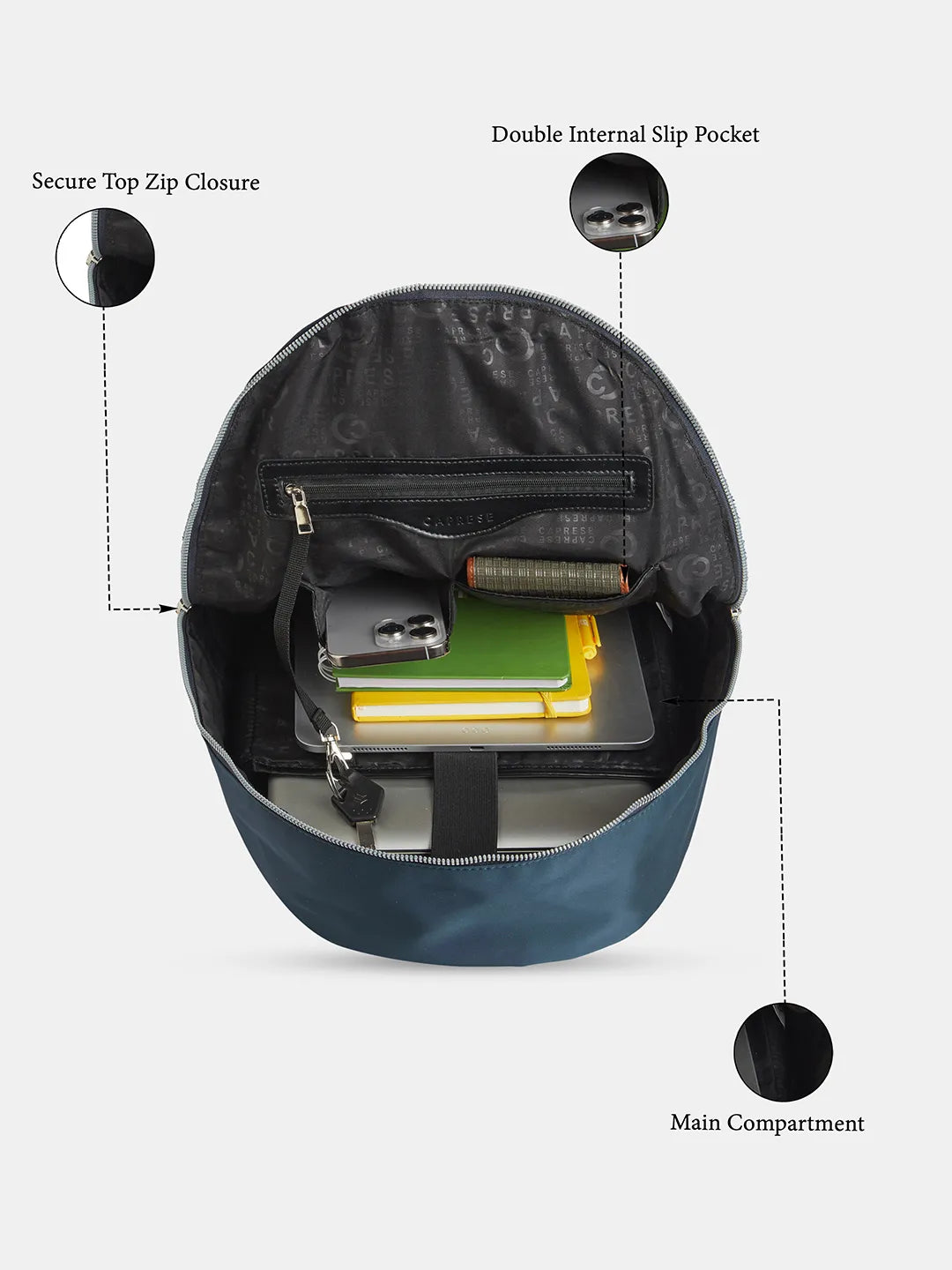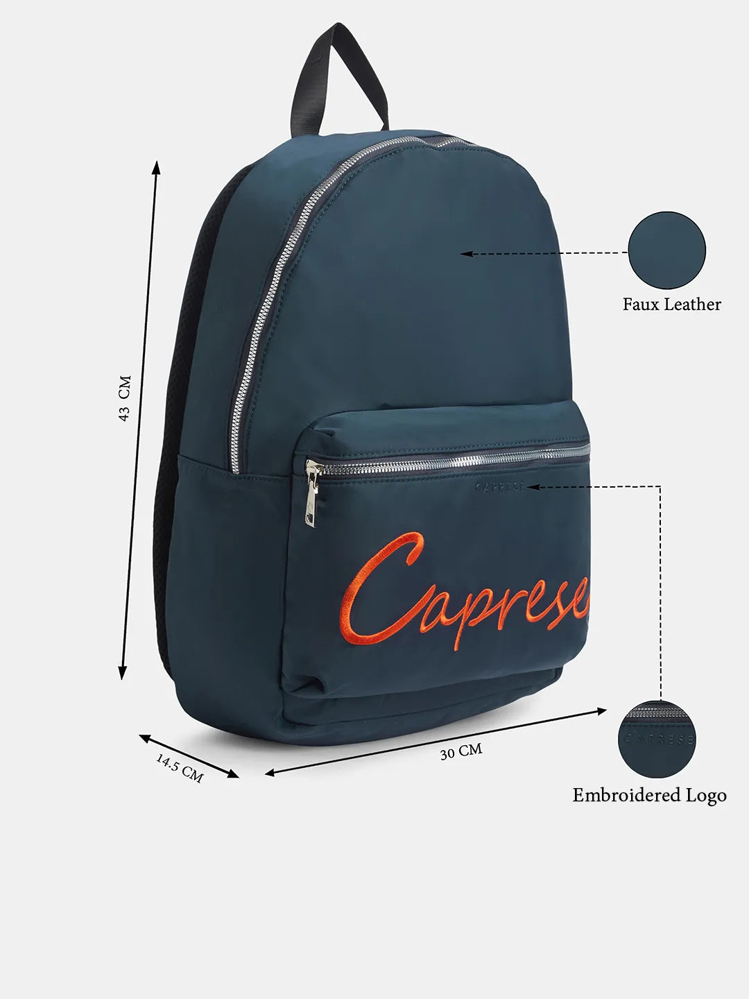 Elevate your everyday style with the Caprese Venus Laptop Backpack, a statement piece that blends modern design with smart functionality. This large, Navy backpack features a bold, contrasting color block accent on the front, highlighting the signature Caprese logo and adding a distinct touch of flair. Its spacious design is tailored to accommodate all your daily essentials, including a laptop, making it a versatile accessory for the modern professional or student.