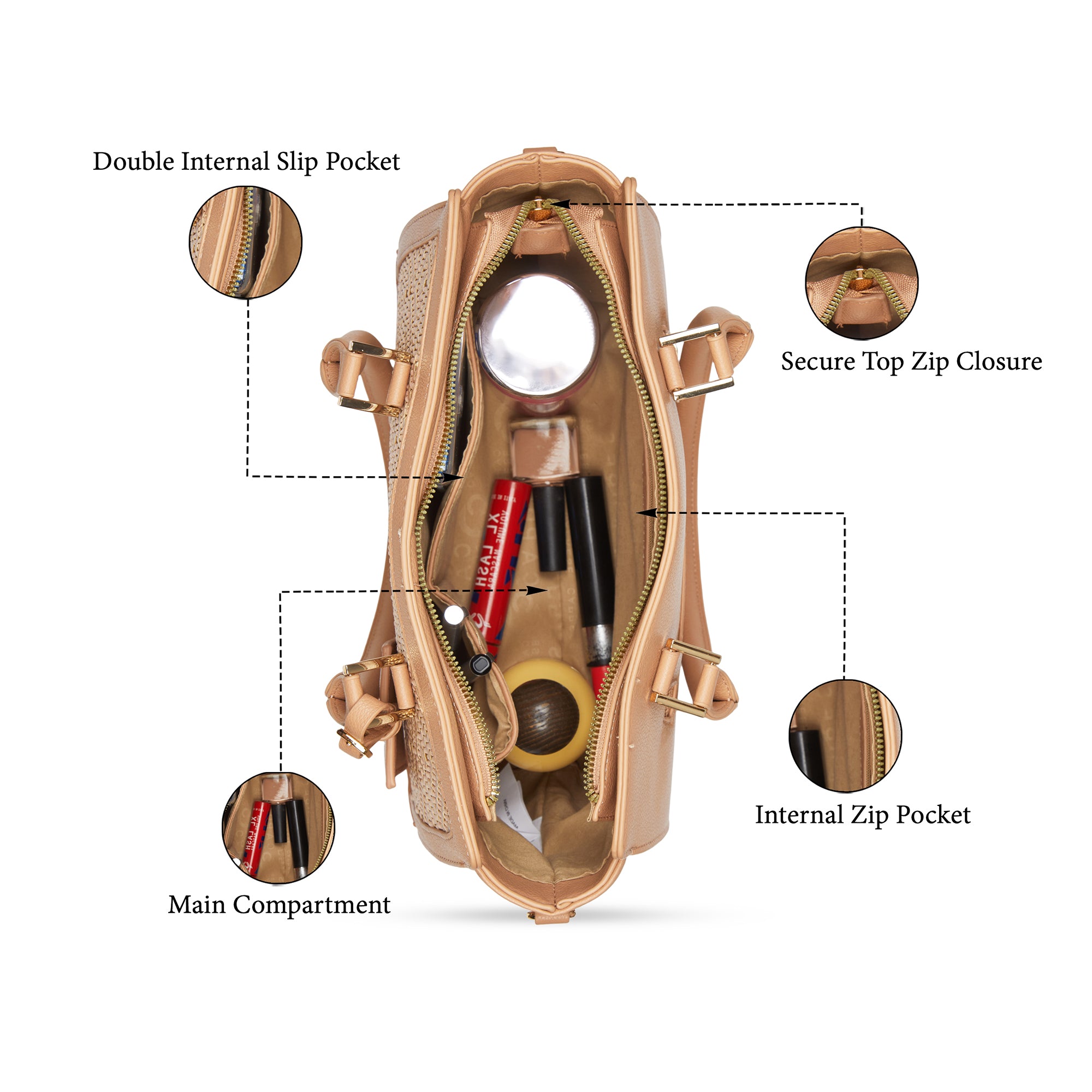 Secure Zipper Closure – Keeps belongings safe while maintaining a sleek and sophisticated look.