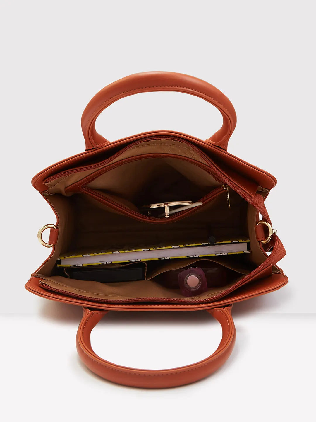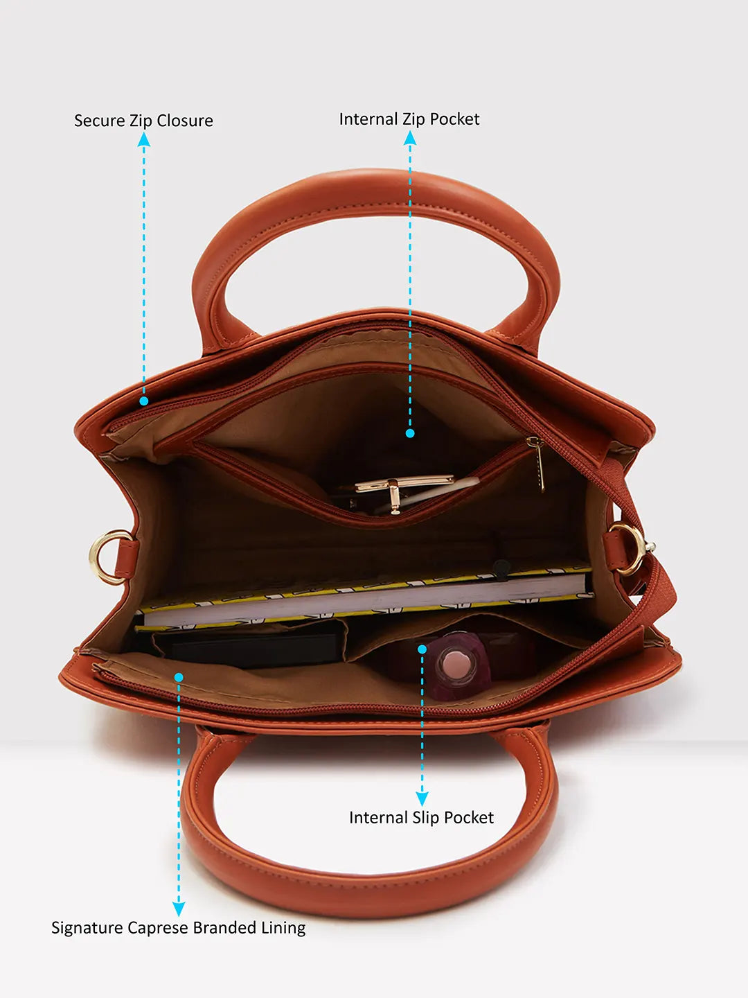 Embrace everyday elegance with the Caprese Zeta Medium Tan Tote Bag, a sophisticated staple crafted for women on the move. This tan tote bag features smooth finishes, sturdy handles, and just the right amount of space for your daily needs. A perfect fit among tote bags for women, it offers timeless design and day-to-night versatility. Whether for errands, meetings, or lunch dates, the Caprese Zeta Medium Tan Tote Bag complements your outfit while keeping your essentials stylishly in place.
